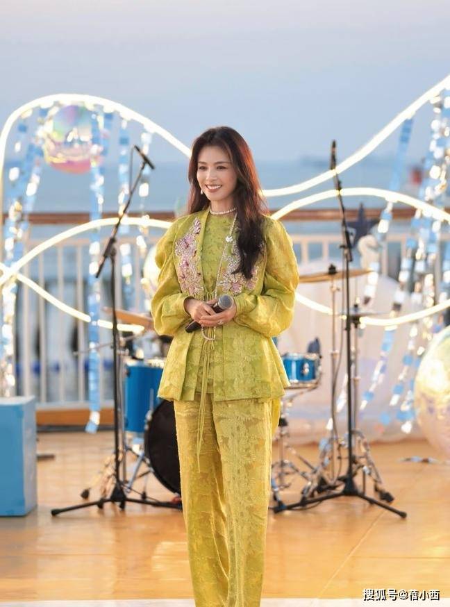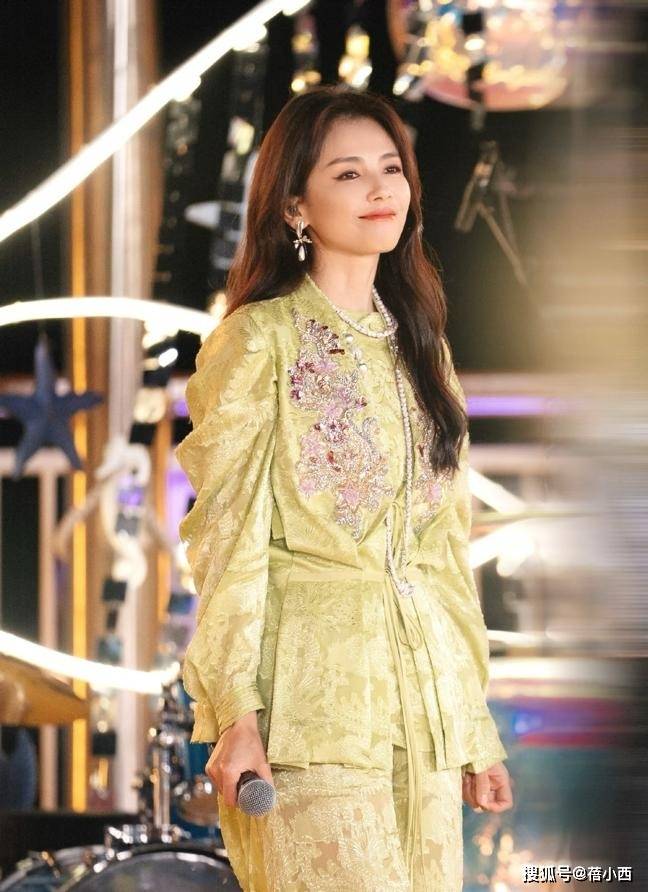 再看刘涛的这一身新中式提花套装,也很适合春天穿。这套搭配的内搭+外套+阔腿裤,全套都采用了金黄色的提花面料,自带高级的肌理感,在舞台灯光下泛着细腻的光泽感,瞬间抓住所有人的目光,而且套装的色彩明亮却不刺眼,非常适配黄皮女性,轻松穿出好气色。