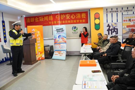为深入贯彻落实金融知识普及与交通安全宣传工作,提升交通运输行业从业人员的风险防范意识,平安集团金华地区统管党委联合金华市公安局交通警察支队,组织旗下平安产险、平安寿险、平安证券、平安融易等专业子公司,走进本地重点交通运输企业,开展“清朗金融网络 守护安心消费”主题宣教活动。