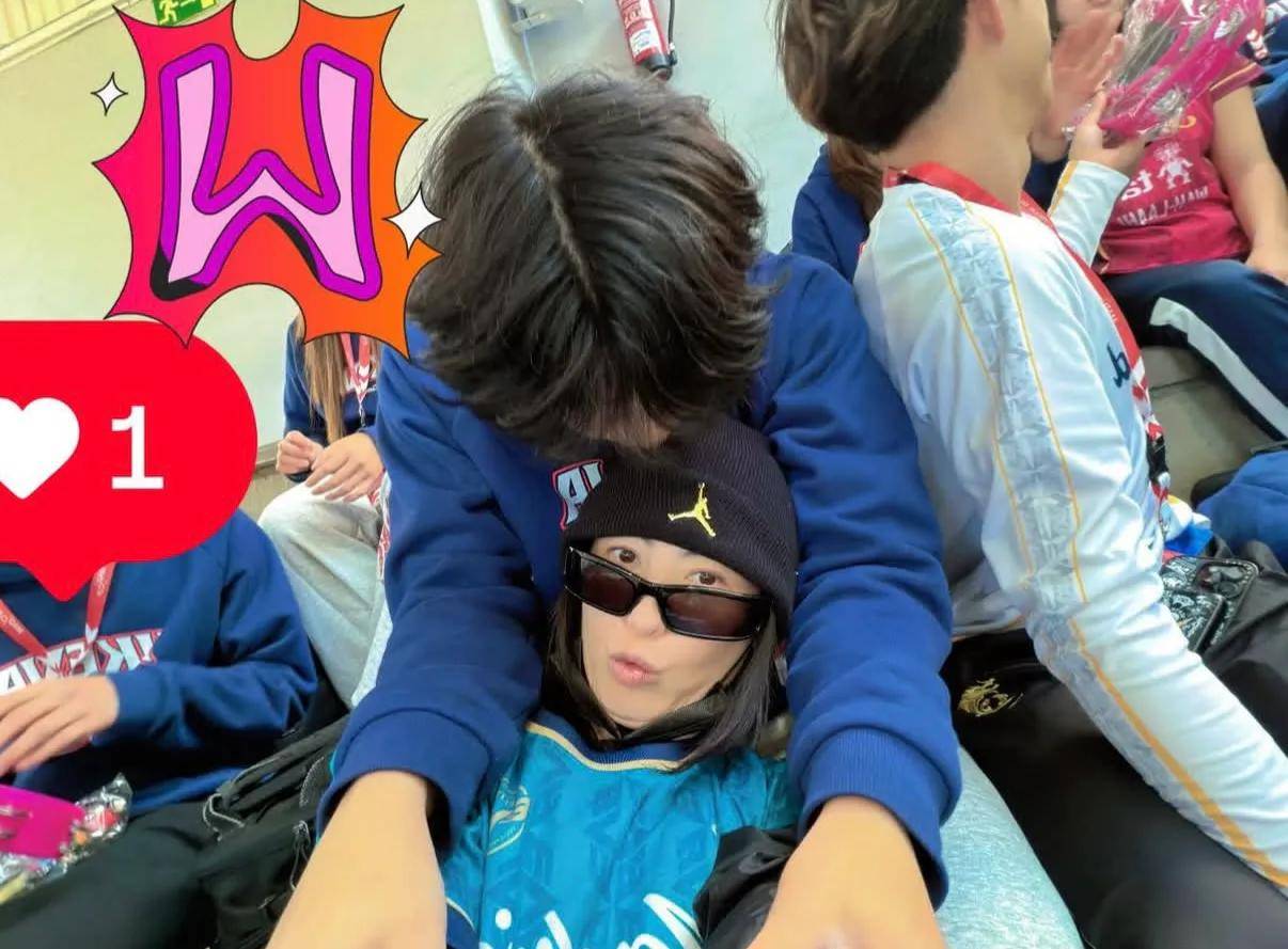 还有一组是小Q正脸出镜的画面,张柏芝平时都很少让儿子露正脸,可能这次看比赛也是心情比较激动吧,难得晒出儿子的帅气正脸。只见小Q穿着蓝色的5号球衣,模样真的太帅啦,虽然画面有些模糊,但也能明显看出跟妈妈张柏芝很像,无论是五官还是神态,都非常像,完美继承妈妈高颜值。